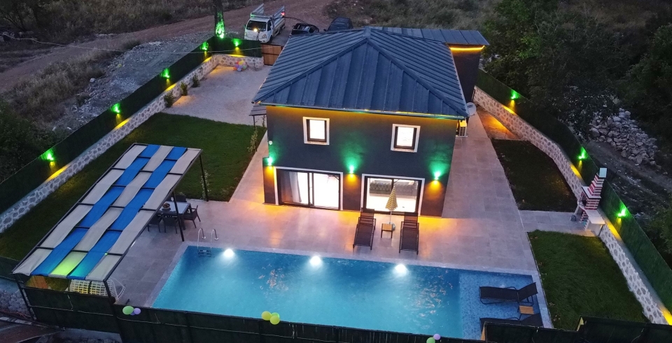 Havuz ve Bahçe : Özel yüzme havuzu, yemek masası, şezlong, şemsiye, salıncak ve barbekü bulunmaktadır.