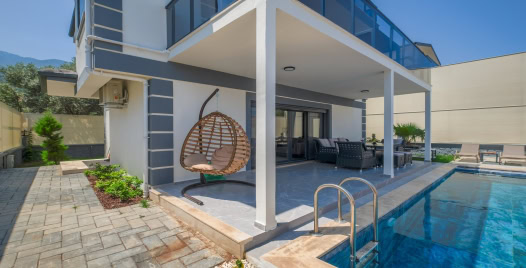 Fethiye karaçulha mevkiinde konumludur. 3 yatak odalı 6 kişi konaklama kapasitesine sahiptir. Geniş bahçe terasına sahip villamız özel havuzludur. İçerisinde jakuzi bulunan villamız oldukça şık ve konforlu bir dizayna sahip kiralık tatil villasıdır. Geniş aile için oldukça ideal kiralık tatil villasıdır.