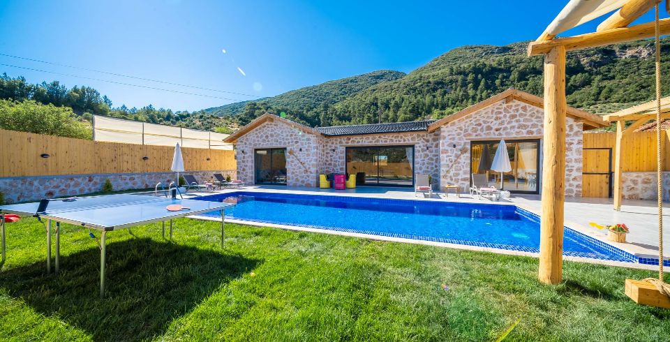 Villa Ediz Kalkan Sarıbelen bölgesinde yer almaktadır. 2 yatak odasına sahip tatil villamız 4 kişilik konaklama kapasitesine sahiptir. Doğa içinde bir konuma sahip olan tatil villası havuz alanı bahçe alanı ile sizlere keyifli bir tatil ortamı sunmaktadır. Özellikle aileler için ideal bir seçenek olan Villa Edizmuhafazakar hassasiyete sahip misafirlerimiz içinde uygun bir tatil ortamı sunmaktadır.