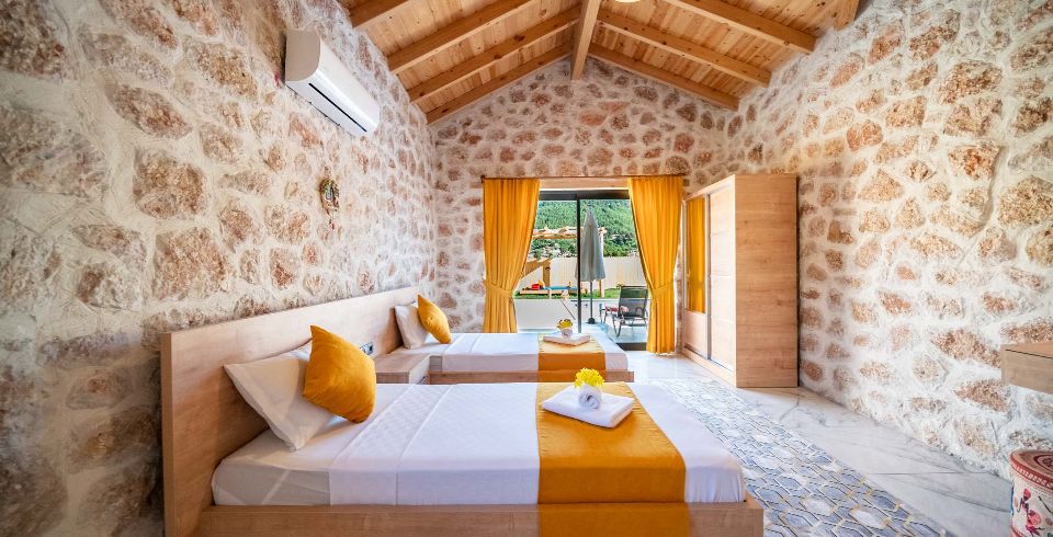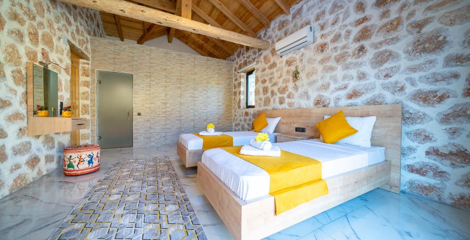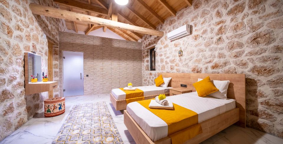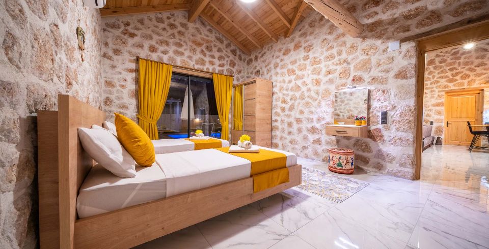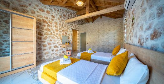 1. Yatak Odası: Çift kişilik yatak, klima, jakuzi, komodin, elbise dolabı, makyaj masası, banyo ve tuvalet bulunmaktadır.