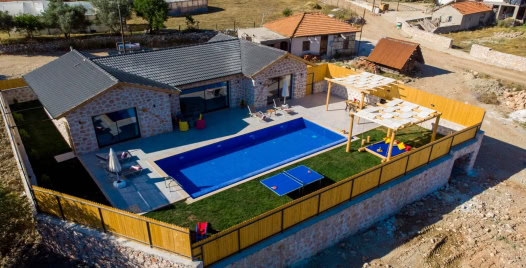 Havuz ve Bahçe: Havuz ve bahçesi korunaklı olup dışarıdan gözükmemektedir. Özel yüzme havuzu, şezlong, şemsiye, salıncak, masa tenisi , yemek masası ve barbekü bulunmaktadır.
