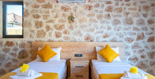 2. Yatak Odası: 2 adet çift kişilik, klima komodin, elbise dolabı, makyaj masası banyo ve tuvalet bulunmaktadır.
