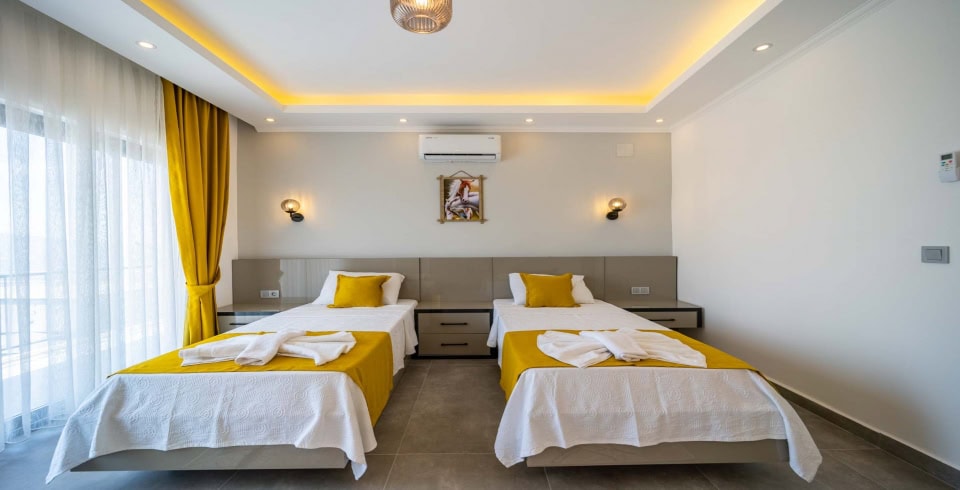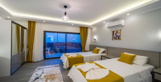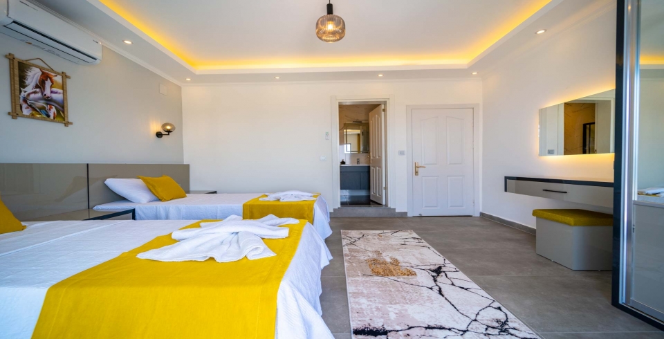 2. Yatak Odası : 2 adet tek kişilik yatak, klima, elbise dolabı, komodin ,makyaj masası, banyo ve tuvalet bulunmaktadır.