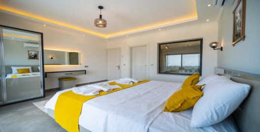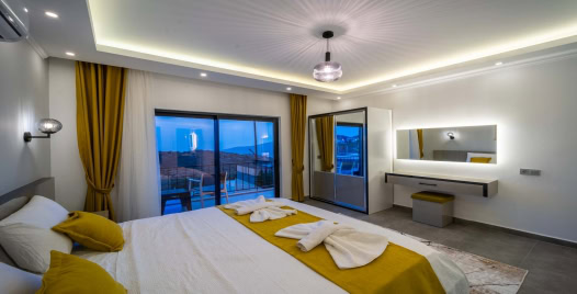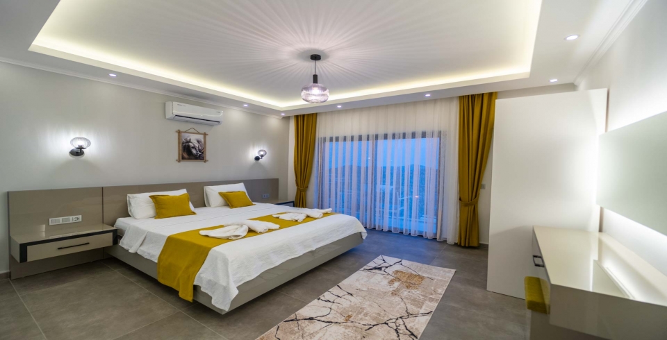 1. Yatak Odası : Çift kişilik yatak ,klima, jakuzi, komodin, elbise dolabı, makyaj masası banyo ve tuvalet bulunmaktadır.