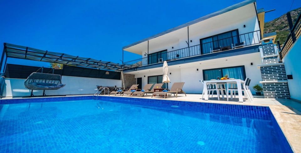 Villa Ediz Kördere bölgesinde bulunmakta olup 2 yatak odalı 4 kişilik villamızdır. Villamız Kalkan merkeze ve Kalkan plajlarına yakın mesafede olup araç ile sürüş mesafesi yaklaşık olarak 5-8 dk mesafede bulunmaktadır. Kalkan şehir merkezine yakınlığı ile ön plana çıkan villamızın ana yatak odasında jakuzi bulunmaktadır. Oturma odası ile birleşik açık plan bir mutfak mevcuttur. Geniş havuz terasında 4 kişilik yemek masası, 4 adet şezlong, 2 adet şemsiye, bulunmaktadır. .Villamız içinde ihtiyaç duyabileceğiniz mobilya mutfak araç gereçler ekipmanlar vardır.