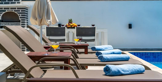 Havuz ve Bahçe: Havuz ve bahçesi korunaklı olup dışarıdan gözükmemektedir. Özel yüzme havuzu, , şezlong, şemsiye, salıncak yemek masası ve barbekü bulunmaktadır.