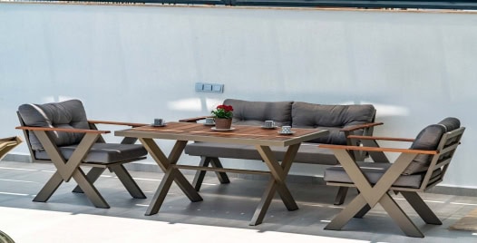 Salon : Villa salonunda konforlu oturma grubu, klima, TV, internet, uydu alıcı, yemek masası, sehpa bulunmaktadır.