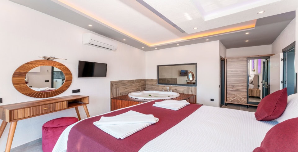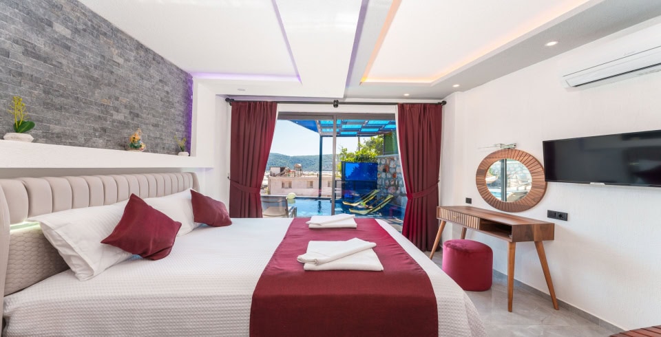 Kalkan’ın Yeşilköy mevkiinde, doğa ile iç içe huzurlu bir konumda yer alan Villa Efecan; 2 yatak odası ve 2 banyosu ile 4 kişilik konaklama kapasitesine sahiptir. Özellikle balayı çiftleri ve çekirdek aileler için ideal olan villamız, gözlerden uzak, korunaklı özel havuzu ile mahremiyet arayan misafirlerimize izole bir tatil fırsatı sunmaktadır.