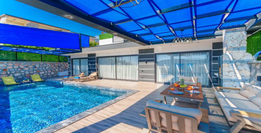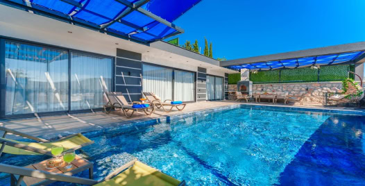 Havuz ve Bahçe : Özel yüzme havuzu bulunan villamızın havuz terasında şemsiye, şezlong, barbekü, pergola, oturma alanı, yemek masası ve sandalyeler bulunmaktadır.