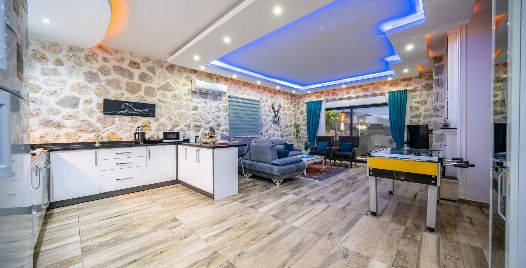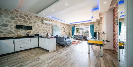 Villamızda bir adet geniş yatak odası yer almakta olup, bu oda çift kişilik yatak, klima, televizyon ve jakuziyle donatılmıştır. Salon kısmında modern oturma grubu, tam donanımlı Amerikan mutfak, yemek alanı ve havuz terasına geçiş bulunmaktadır. Mutfakta; buzdolabı, fırın, ocak, bulaşık makinesi, kettle ve yemek takımları gibi tüm ihtiyaçlarınız düşünülmüştür.