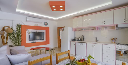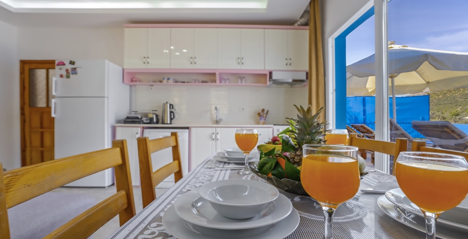Mutfak : Villamızın geniş Amerikan mutfağı ile sizlere kendi evinizin mutfağı gibi hissettirecek. Ayrıca mutfakta klima, bulaşık makinası, buzdolabı, çamaşır makinası, mikrodalga fırın, tost makinası, ekmek kızartma, su ısıtıcısı, fırın, 4`lü ocak seti ve 4 kişilik geniş yemek masası ile tava tencere vb. mutfak araç gereçlerini kullanma fırsatını sizlere sunuyoruz.