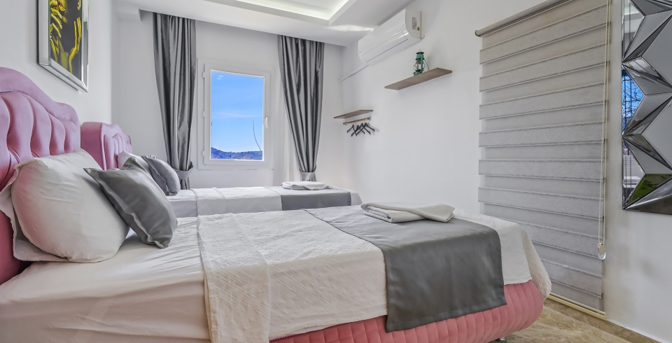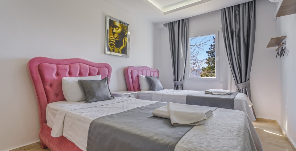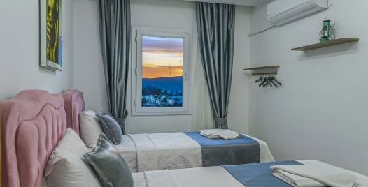 2. Yatak Odası : iki tane tek kişilik yatak la beraber klima, elbise dolabı, makyaj masası, komodin, banyo ve lavabodan oluşmaktadır.