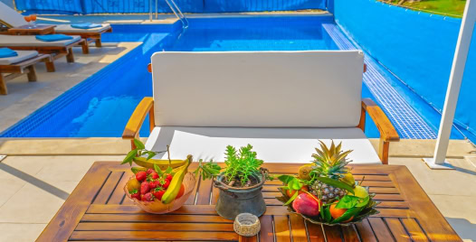 Havuz : Villamızın havuzu ise etrafı dışarıdan görülmeyecek şekilde korunaklı olup sizlere huzurlu ve keyifli havuz deneyimi sunmaktadır. Size özel muhafazakâr yüzme havuzu, şezlong keyfi ve şemsiye ile yazın en güzel günlerinde sizleri bekliyor.