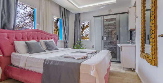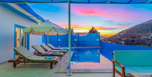 Bütün villa çeşitlerimiz için villalara ilk gün giriş saati öğleden sonra 16.00, tatilinizin sonunda ise villadan ayrılma saatiniz ise sabah 10.00’dur. Aradaki zaman diliminde hijyen için gerekli temizlik yapıldığından dolayı villaya giriş saatinizden erken gelme durumlarında sizlere yardımcı olamayacağımızı belirtmek durumundayız. Bu yüzden sizden ricamız villaya giriş ve çıkış saatlerinize dikkat etmeniz. Kalkanda bulunan bu villamız coğrafi yapısı bakımından, yamaç üzerine kurulmuş bu harika tasarım villamız bu yüzden size harika bir manzara sunmaktadır. Kalkan ve çevresindeki bulunan tüm villalarımıza ulaşmak için, yokuş yukarı çıkılmaktadır ama bunun sonucunda mükemmel bir tatil yerine ulaşmış olacaksınız.