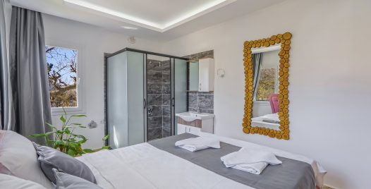 1. Yatak Odası : İki kişilik yatakla beraber sizleri sıcak yaz günlerinde serin tutması için bakımları yapılmış klima bulunmaktadır. Elbise dolabı, makyaj masası, komodin, banyo ve lavabodan oluşmaktadır. Bu yatak odamız da jakuzi bulunmaktadır.
