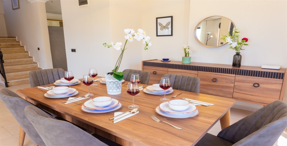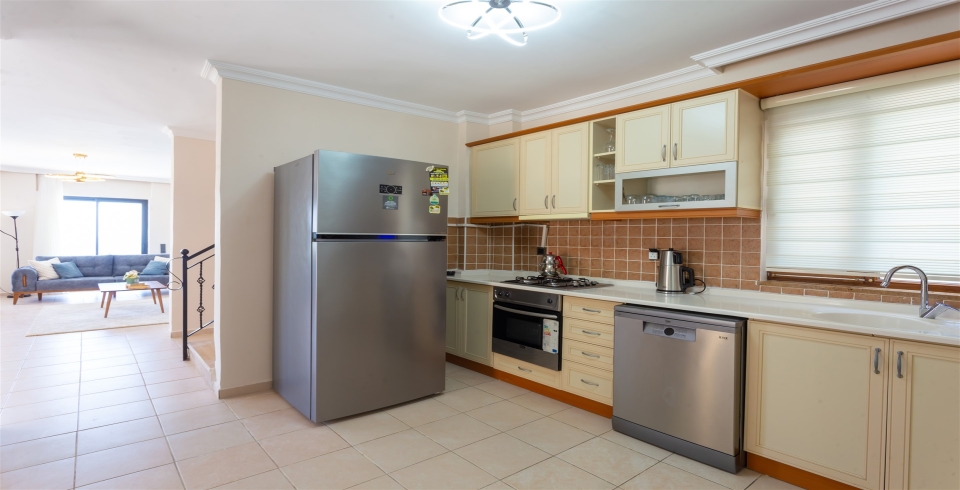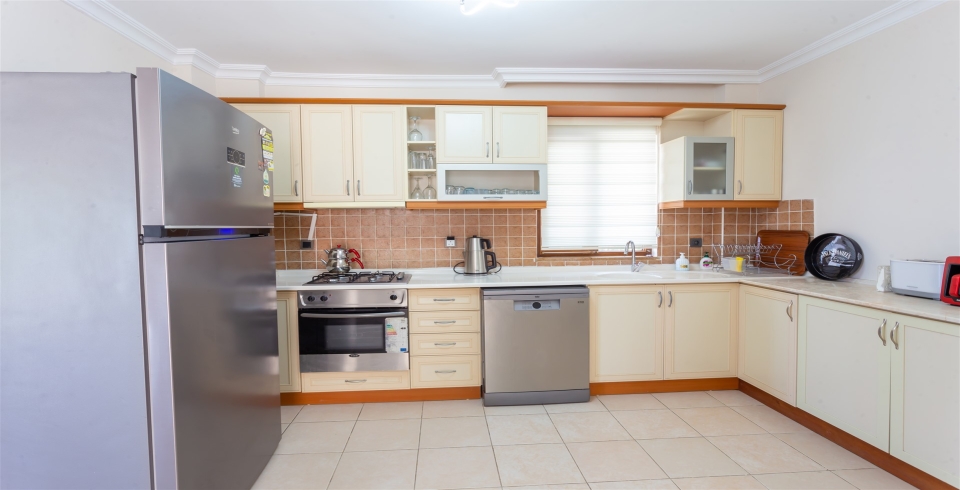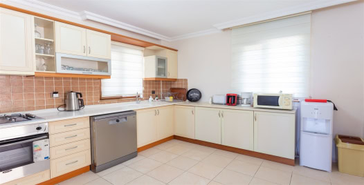 Mutfak: Buzdolabı, bulaşık makinesi, ocak, fırın ve gerekli bütün ihtiyaç duyabileceğiniz her türlü araç ve gereçler mevcuttur.