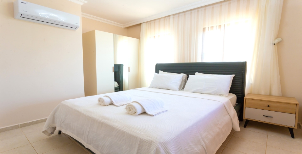 2.Yatak Odası:1 adet çift kişilik yatak, komodin, elbise dolabı, makyaj masası, banyo ve tuvalet yer almaktadır.