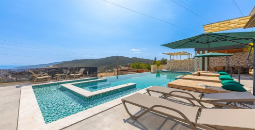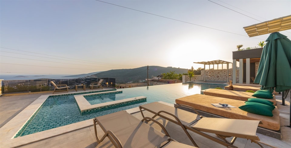 Havuz ve Bahçe: Deniz manzaralı özel yüzme havuzu, şezlong, güneş şemsiyesi, bahçe yemek masası, bahçe oturma gruba bulunmaktadır.