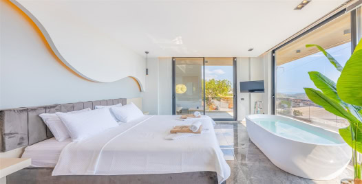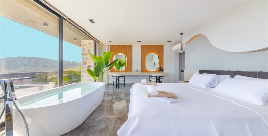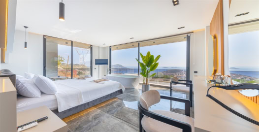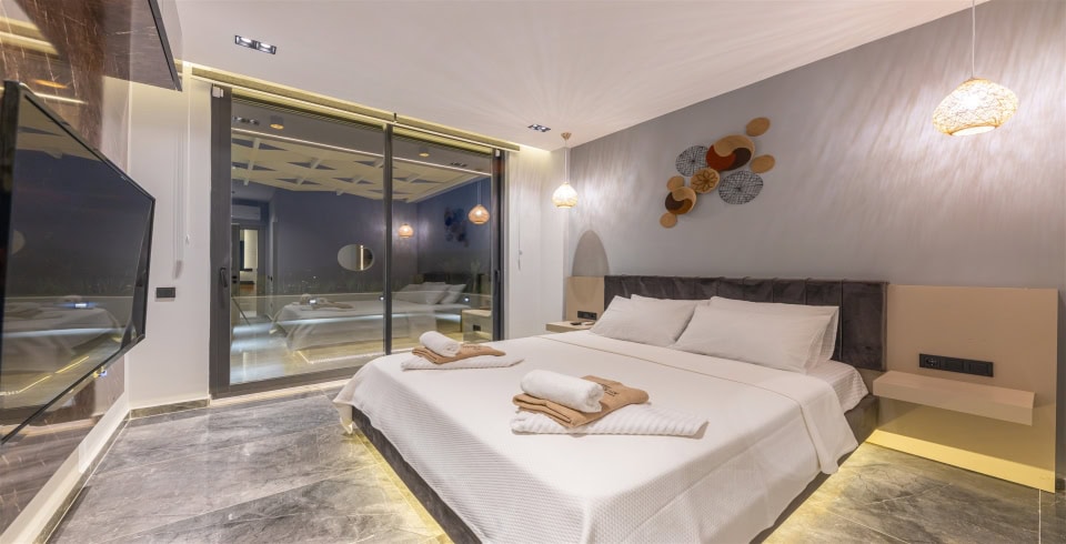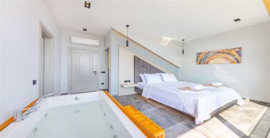 3. Yatak Odası: Bir adet çift kişilik yatak, elbise dolabı, komodin, klima, makyaj masası, jakuzi, banyo ve tuvalet bulunmaktadır.