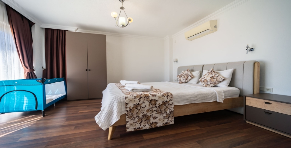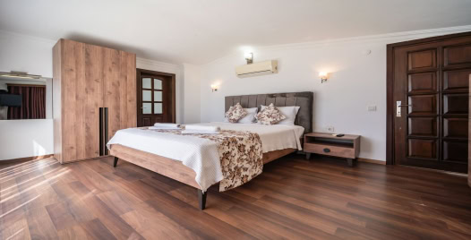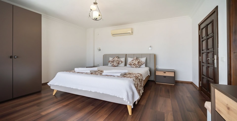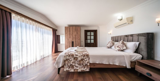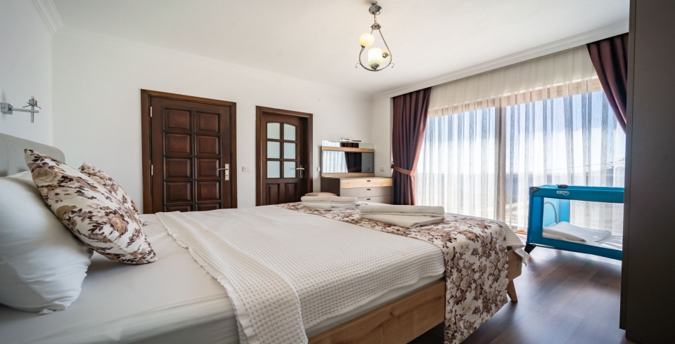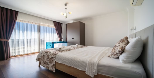 2. Yatak Odası : 1 Adet çift kişilik yatak, komodin, makyaj masası, klima, banyo ve tuvalet bulunmaktadır.
