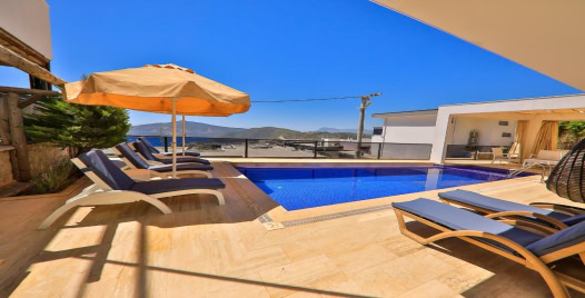 Kalkan’ın Kördere bölgesinde yer alan Villa Elisa, deniz manzarası, geniş bahçesi ve çocuk havuzu ile aileler için huzurlu ve keyifli bir tatil sunuyor. 3 yatak odası ve 6 kişilik kapasitesi, hem aileler hem de arkadaş grupları için ideal bir konaklama imkânı sağlarken, ferah iç ve dış alanlarıyla rahat bir yaşam alanı sunuyor.