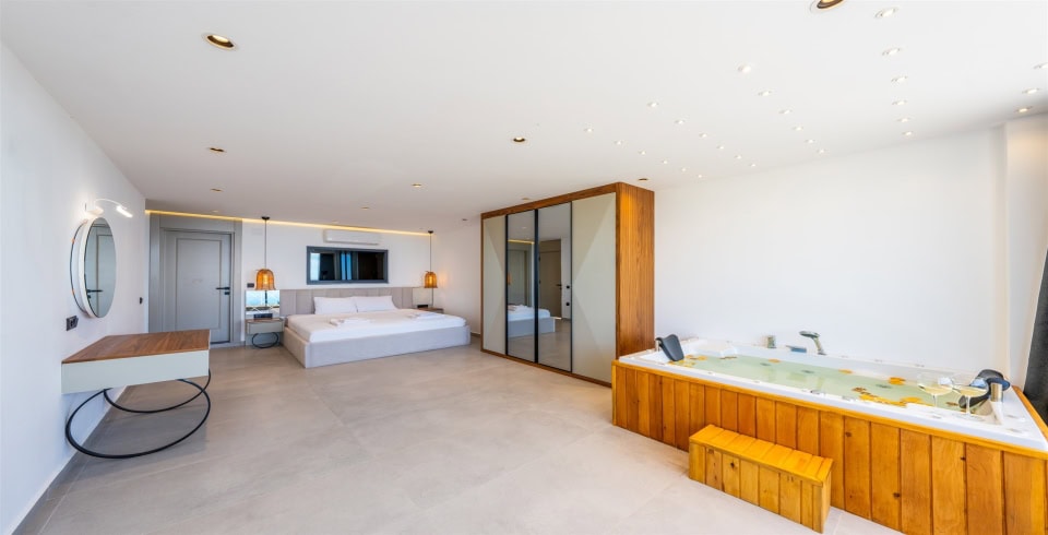 3. Yatak Odası : Bir adet çift kişilik yatak, komodin, elbise dolabı, makyaj masası, jakuzi, klima, banyo ve tuvalet bulunmaktadır.