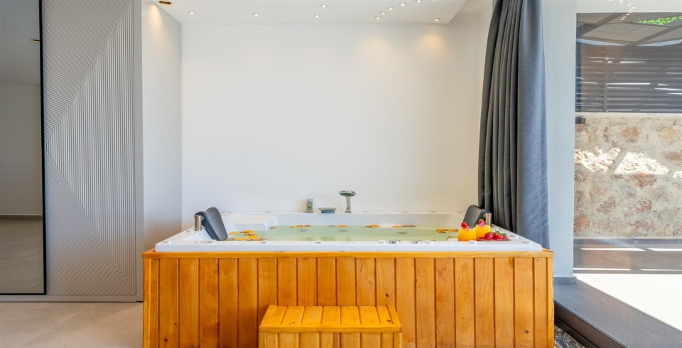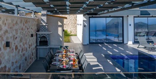 Havuz ve Bahçe: Deniz manzaralı özel yüzme havuzu, şezlong, şemsiye, bahçe yemek masası, barbekü bulunmaktadır.