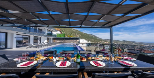 Kalkan Akbel Bölgesinde yer alan 5 yatak odalı 10 kişilik konaklama kapasitesine sahip lüks villalarımızdan biridir. Mavinin büyüleyici tonları içerisinde lüks tasarımı ve modern yapısı ile sizlere rüya gibi bir tatil imkanı sunuyor. Kalabalık aileler ya da arkadaş grupları için en ideal deniz manzaralı kiralık villamızdır. Villamızın üst katında sauna ve havuzunda jakuzi bulunmaktadır.