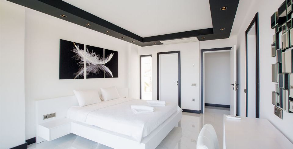 1. Yatak Odası : Çift kişilik master yatak odası, klima, elbise dolabı, makyaj masası, komodin, jakuzi, balkon, banyo ve lavabo bulunmaktadır.