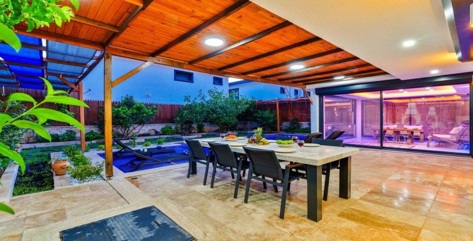 Kalkan’ın huzurlu Kördere mevkiinde bulunan Villa Elvin, 2 yatak odası ve 5 kişilik kapasitesiyle aileler ve arkadaş grupları için ideal bir tatil imkanı sunar. Modern tasarımı, korunaklı özel havuzu ve konforlu iç mekanlarıyla keyifli bir konaklama sağlar. Şehir merkezine yakın konumu sayesinde hem sakin bir tatil yapabilir hem de Kalkan’ın cazibe merkezlerine kolayca ulaşabilirsiniz. Mahremiyet ve rahatlığı bir arada sunan bu villa, unutulmaz bir tatil için sizi bekliyor!