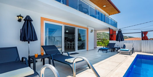 Bahçe : Villamızın bahçesinde özel yüzme havuzu, güneşlenmeniz için 4 adet şezlong, güneşlenme terası, 4 kişilik masa, Langırt, oturma grubu, mangal keyfiniz için barbekü, güneş şemsiyesi bulunmaktadır.