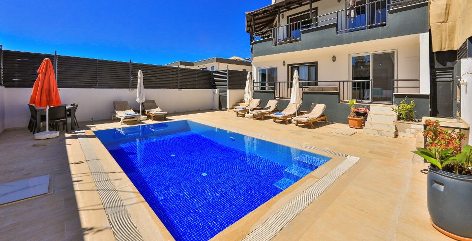 Kalkan Akbel bölgesinde 3 yatak odalı 6 kişilik konaklama kapasitesine sahiptir. Geniş aile ve arkadaş grupları için de tercih edilen villa özenle tasarlanmıştır. Ayrıca villa içerisinde bulunan çift kişilik süit yatak odasında keyifli zamanlar geçirebilirsiniz. Hem deniz hem de doğa manzarasını siz misafirlerimize sunup konum olarak Kalkan merkeze 5 dk. mesafede bulunmaktadır.