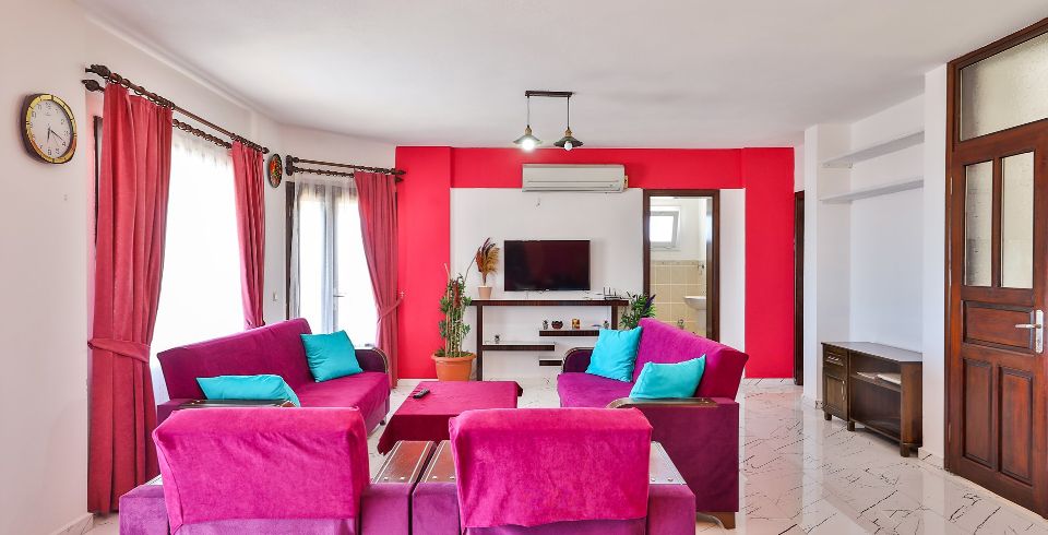 Salon : Doğa manzaralı (Havuz katında), oturma grubu, uydu alıcı, TV, klima, lavabo, ütü, ütü masası, elektrik süpürgesi, havuz kenarına çıkış ve kablosuz modem, tuvalet bulunmaktadır.
