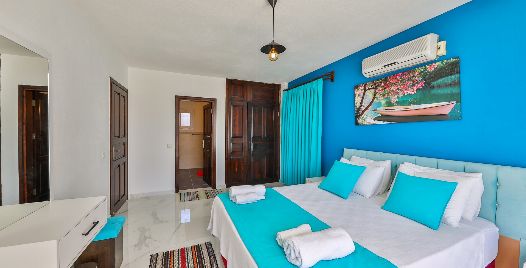 3. Yatak Odası : 2 tek çift kişilik yatak, elbise dolabı, makyaj masası, klima, banyo ve lavabo bulunmaktadır.