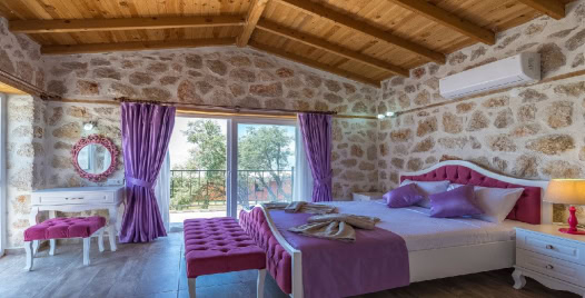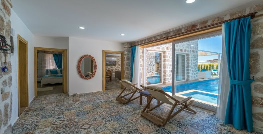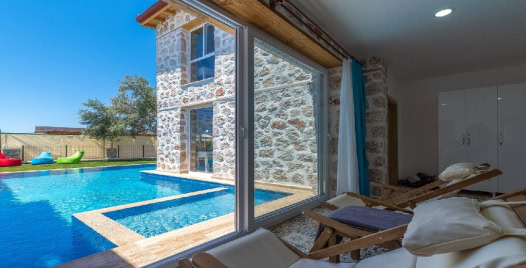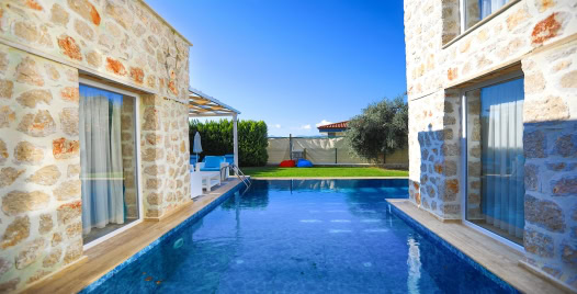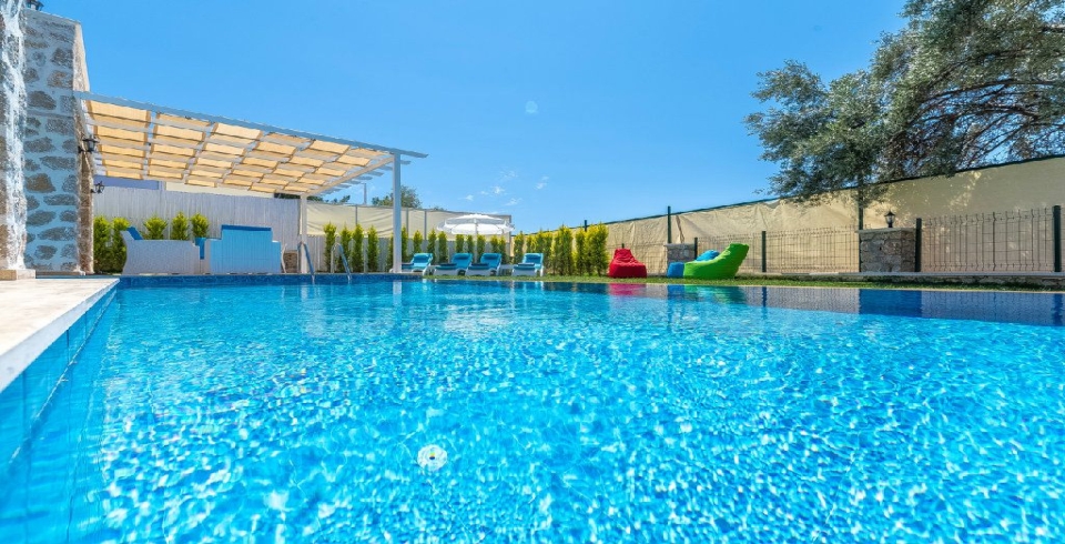 Taş mimarisi ile geleneksel dokuyu modern konforla buluşturan villa, 42 m² L şeklinde korunaklı özel yüzme havuzu sayesinde gözlerden uzak, huzurlu bir tatil vadediyor. Geniş bahçesi, doğayla iç içe keyifli vakit geçirmenizi sağlarken, çocuk oyun alanı minik misafirler için güvenli ve eğlenceli anlar sunuyor. Ayrıca, jakuzisi ile günün yorgunluğunu atabilir, doğanın içinde rahatlamanın tadını çıkarabilirsiniz.