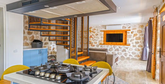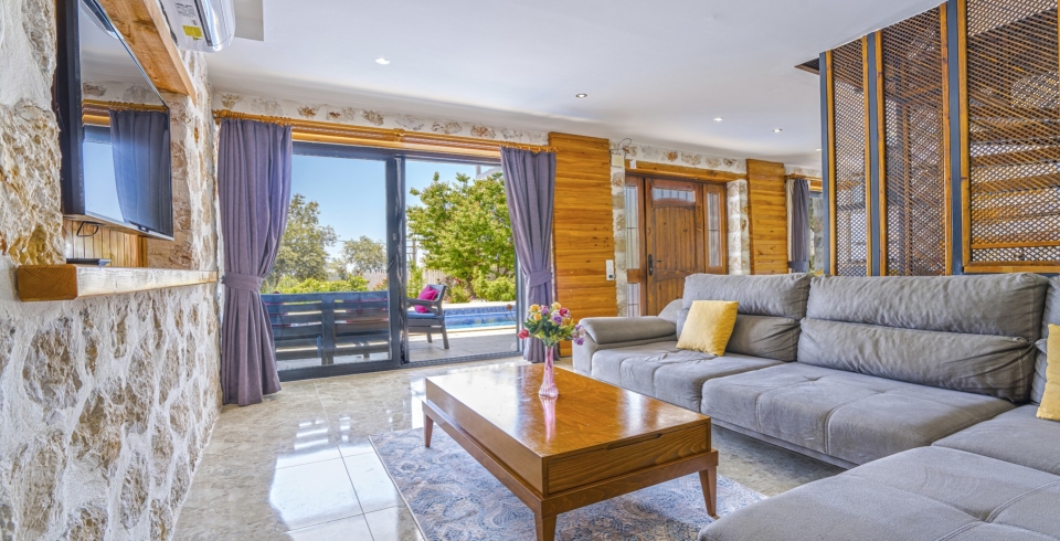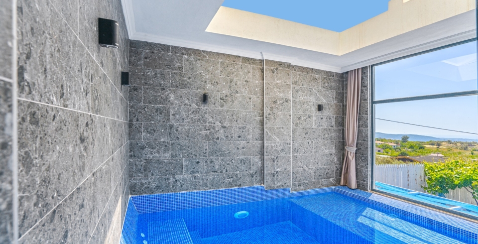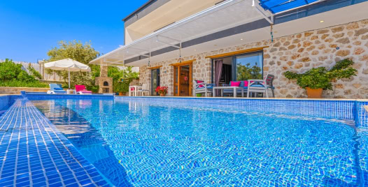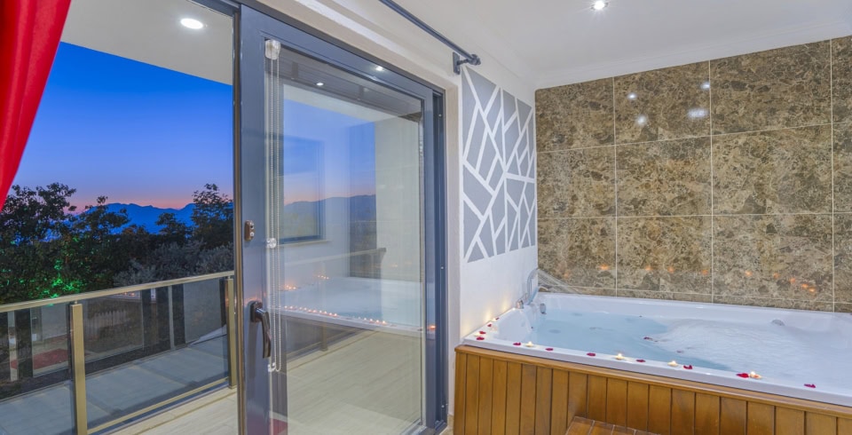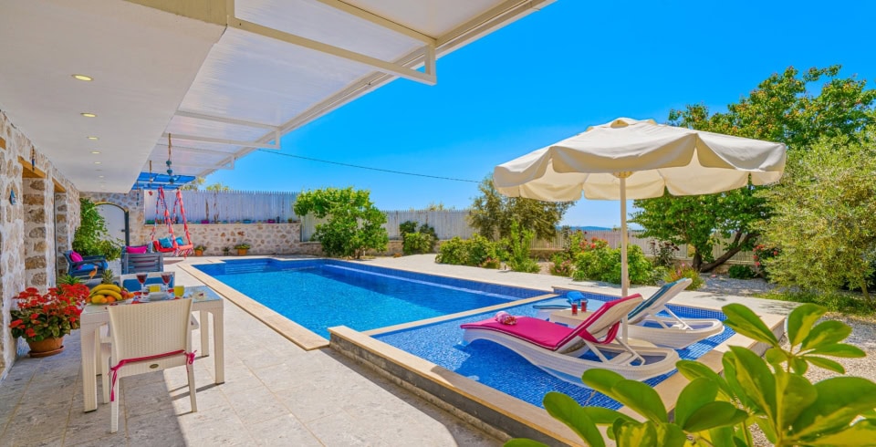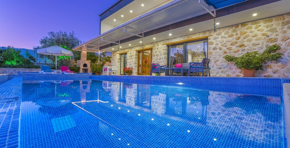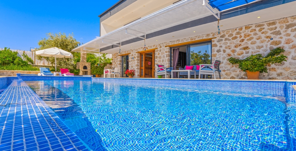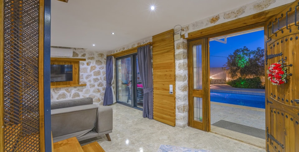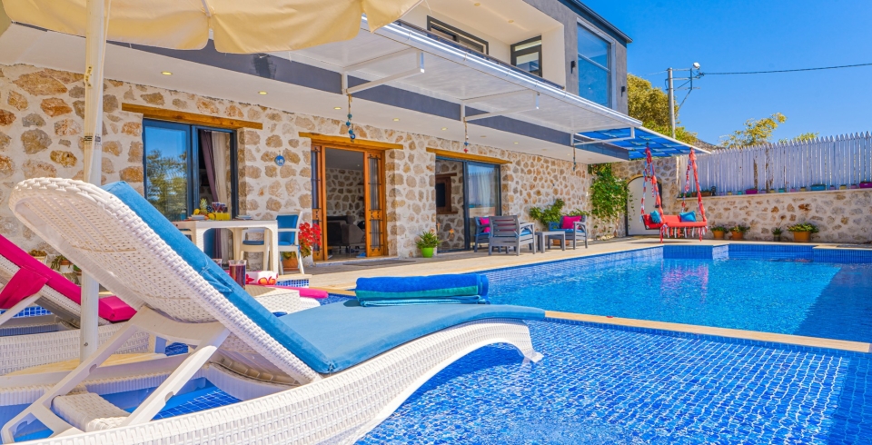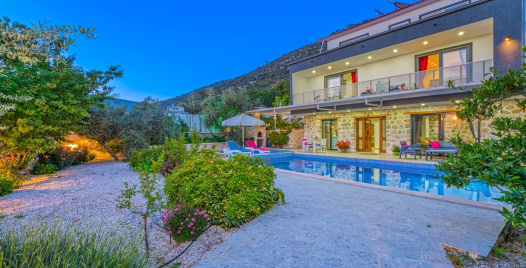 Kalkan’ın huzur dolu Üzümlü bölgesinde yer alan Villa Emma, doğayla iç içe, taş ve ahşap detaylarıyla sıcak ve romantik bir atmosfer sunan özel bir balayı villası. 1 yatak odası ve 2 kişilik kapasitesi, şık ve konforlu tasarımıyla çiftler için mükemmel bir kaçış noktası oluşturuyor. Tam korunaklı yapısı, muhafazakar konuklar için mahremiyet sağlarken, jakuzisi ve kapalı ısıtmalı havuzu dört mevsim lüks ve rahatlatıcı bir deneyim sunuyor.