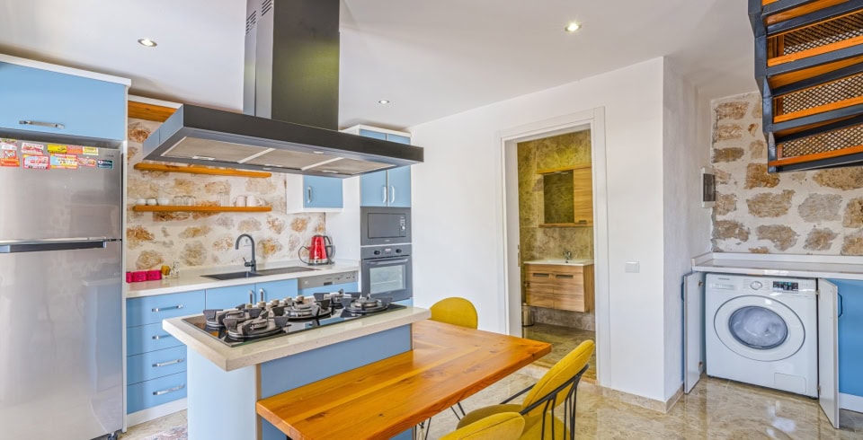 Mutfak : Modern Amerikan mutfak içerisinde buzdolabı, bulaşık makinası, fırın, ocak, mikrodalga fırın, yemek masası, yemek masası, yemek takımları, çatal ve bıçak takımları, tencere ve tava takımları, bardaklar bulunmaktadır.