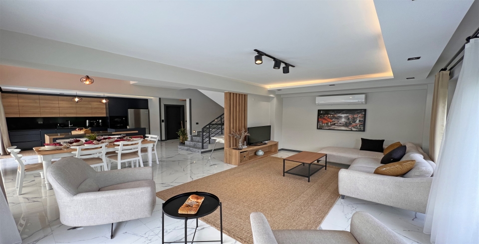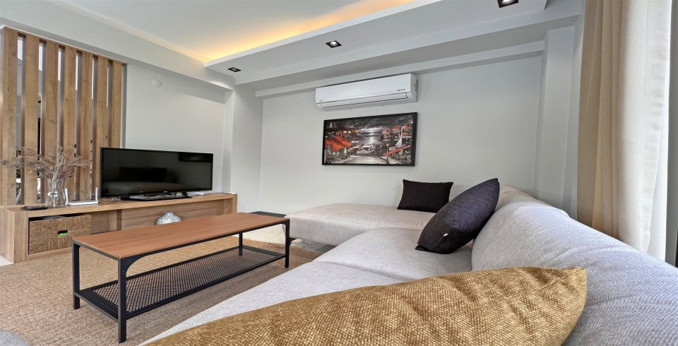 Salon : Oturma grubu, TV, klima, sehpa bulunmaktadır.