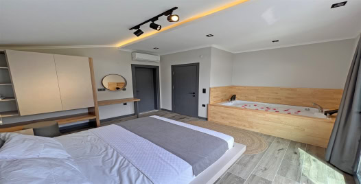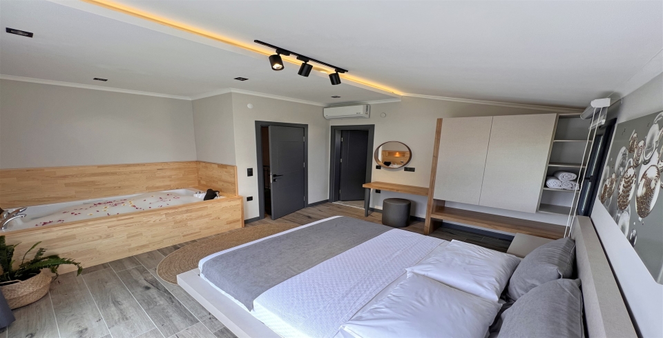 1. Yatak Odası : 1 adet çift kişilik yatak, klima, komodin, elbise dolabı, banyo ve tuvalet bulunmaktadır.