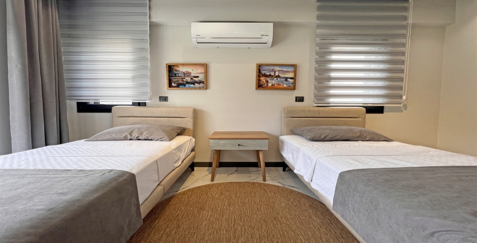 3. Yatak Odası : 2 adet tek kişilik yatak, klima, komodin, elbise dolabı, banyo ve tuvalet bulunmaktadır.
