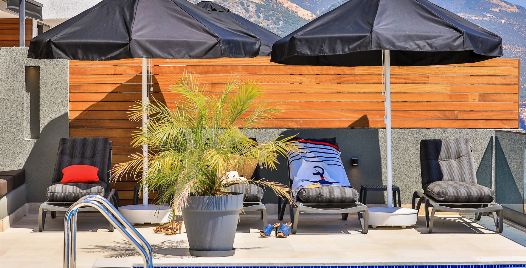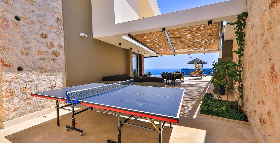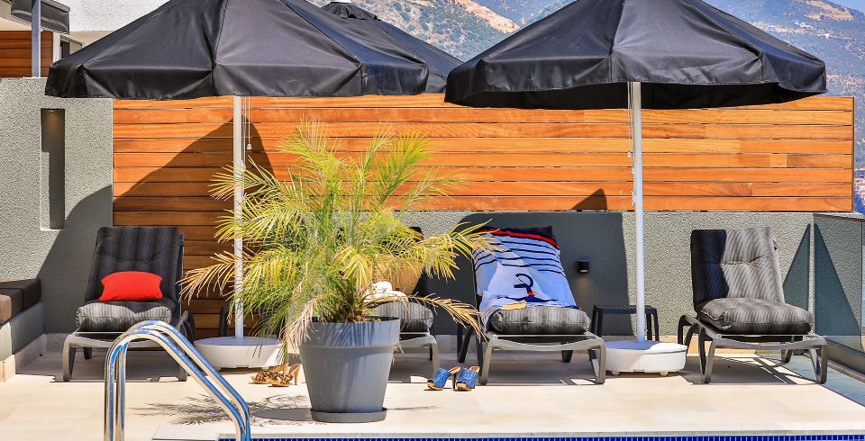 Salon : Salonda klima uydu alıcı, TV, DVD Player, oturma grubu, ütü ve ütü masası, lavabo yer almaktadır ve havuz kenarına çıkış vardır. Salon havuz katındadır. En üst katta dinlenmek ve güneşlenmek için çok geniş bir seyir terası daha vardır. Bu alanda da oturma gurubu ,masa ve sandalye bulunur.