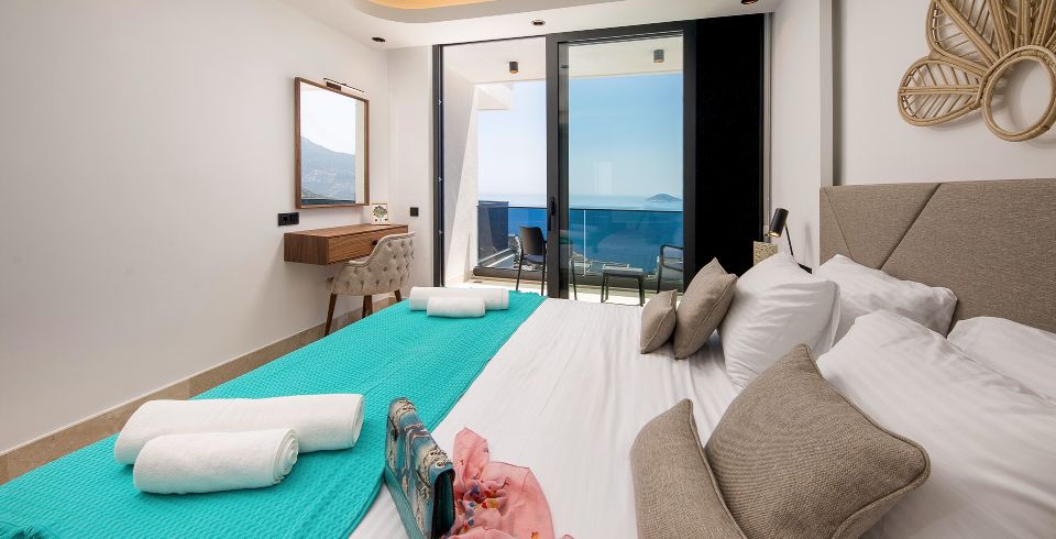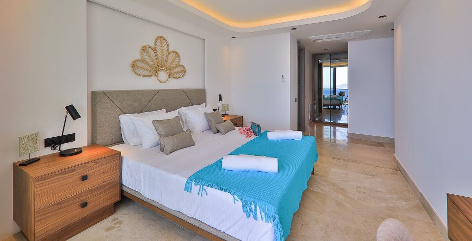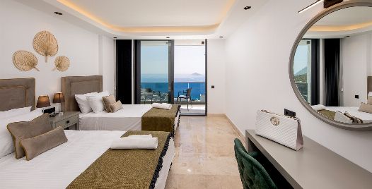 3. Yatak Odası : 2 adet tek kişilik konfor yatak, gardırop, klima, komodin, makyaj masası, banyo-WC ve havuz terasına çıkış yer almaktadır.