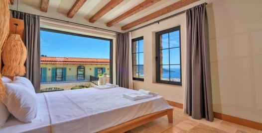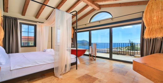 Villa Erato, Kalkan’ın Kızıltaş bölgesinde yer alan ve panoramik deniz manzarasını konuklarına sunan lüks bir villadır. Beş yatak odası ve beş banyosu ile on kişiye kadar konaklama kapasitesi mevcuttur. Geniş cam cepheleri, açık plan salon-mutfak düzeni ve zarif iç dekorasyonu ile iç mekân, ferah ve davetkâr bir atmosfer sunar.