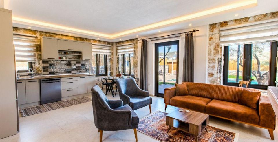 Salon : Oturma grubu, sehpa, televizyon (Smart TV), uydu alıcısı, klima, internet, terasa çıkış bulunmaktadır.