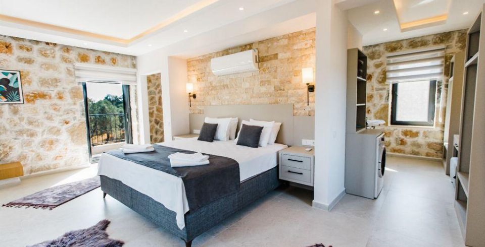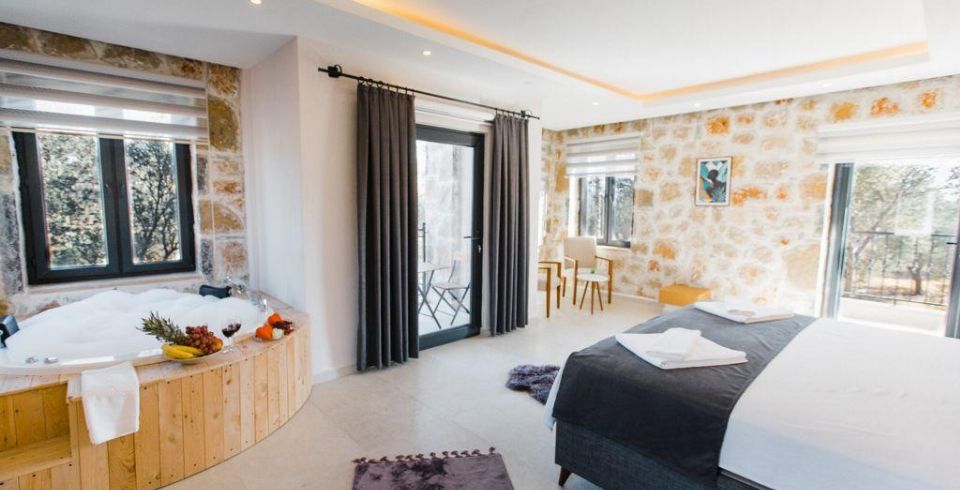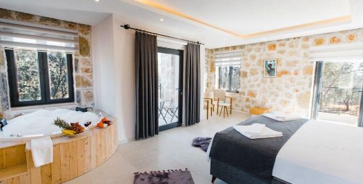 1. Yatak Odası : Çift kişilik yatak, klima, komodin, makyaj masası, elbise dolabı, jakuzi banyo ve lavabo bulunmaktadır.