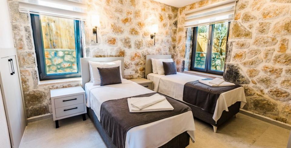 2. Yatak Odası : 2 adet tek kişilik yatak, klima, komodin, elbise dolabı, banyo ve lavabo bulunmaktadır.