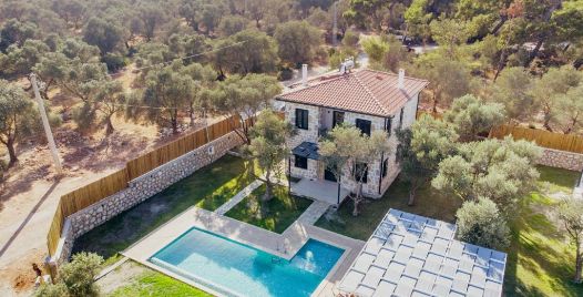 Havuz ve Bahçe : Çam ağaçları arasında, şemsiye, bahçe mobilyası, şezlong, mangal ve yemek masası bulunmaktadır.