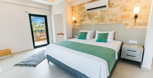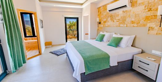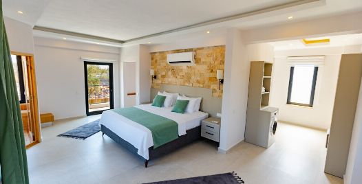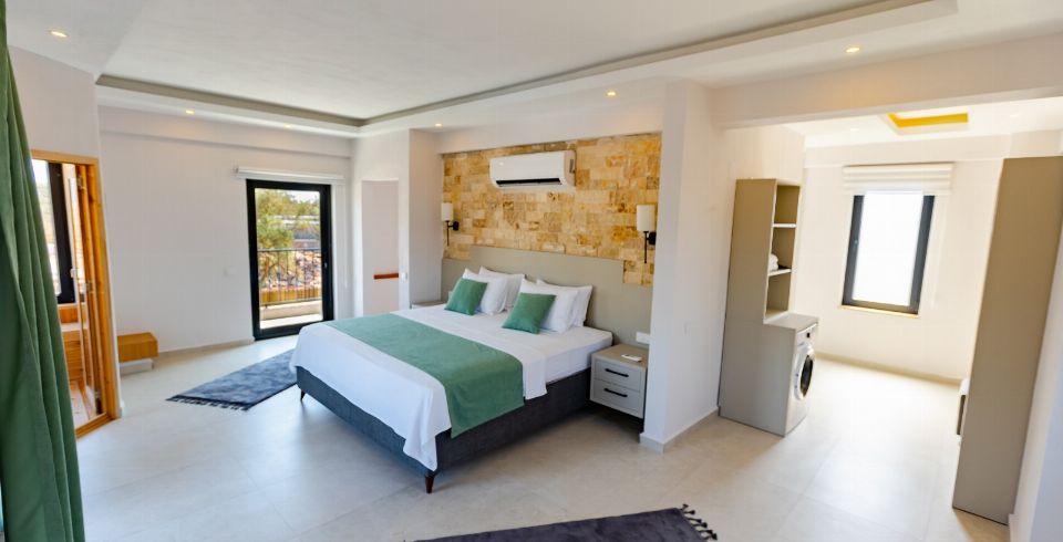 1. Yatak Odası : Çift kişilik yatak, klima, komodin, makyaj masası, elbise dolabı, jakuzi banyo ve lavabo bulunmaktadır.