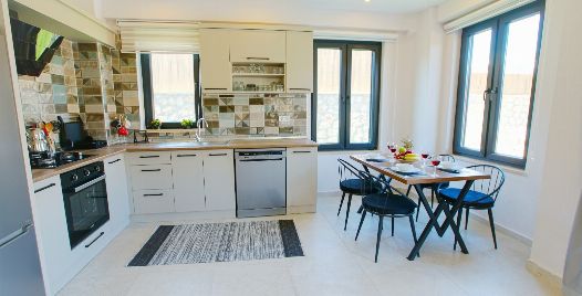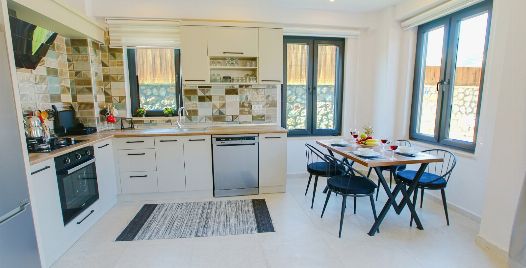 Mutfak : Buzdolabı, çamaşır makinesi, bulaşık makinesi fırın, mikrodalga fırın, 4’lü ocak, su ısıtıcı (kettle), tost makinesi, yemek masası ve 4 kişi için mutfak takımı bulunmaktadır.
