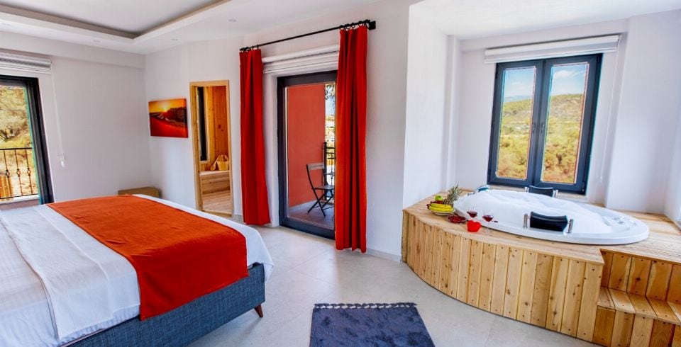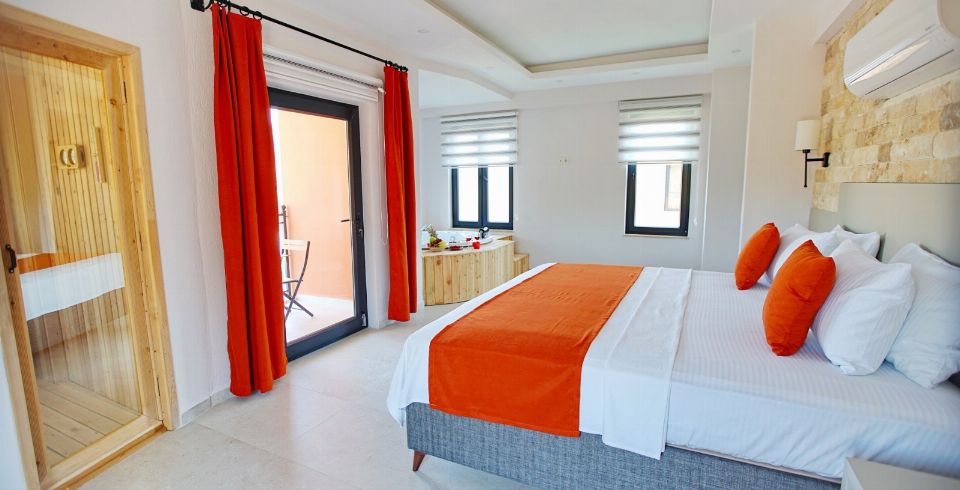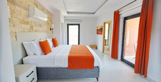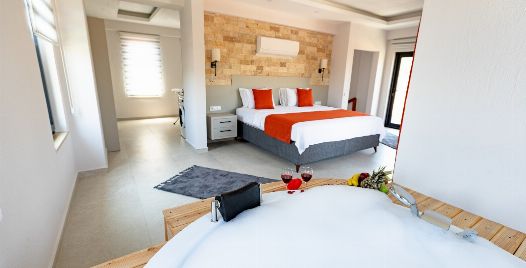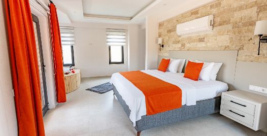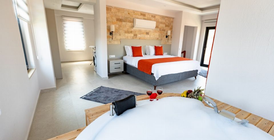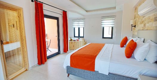 1. Yatak Odası : Çift kişilik yatak, klima, komodin, makyaj masası, elbise dolabı, jakuzi, sauna banyo ve lavabo bulunmaktadır.